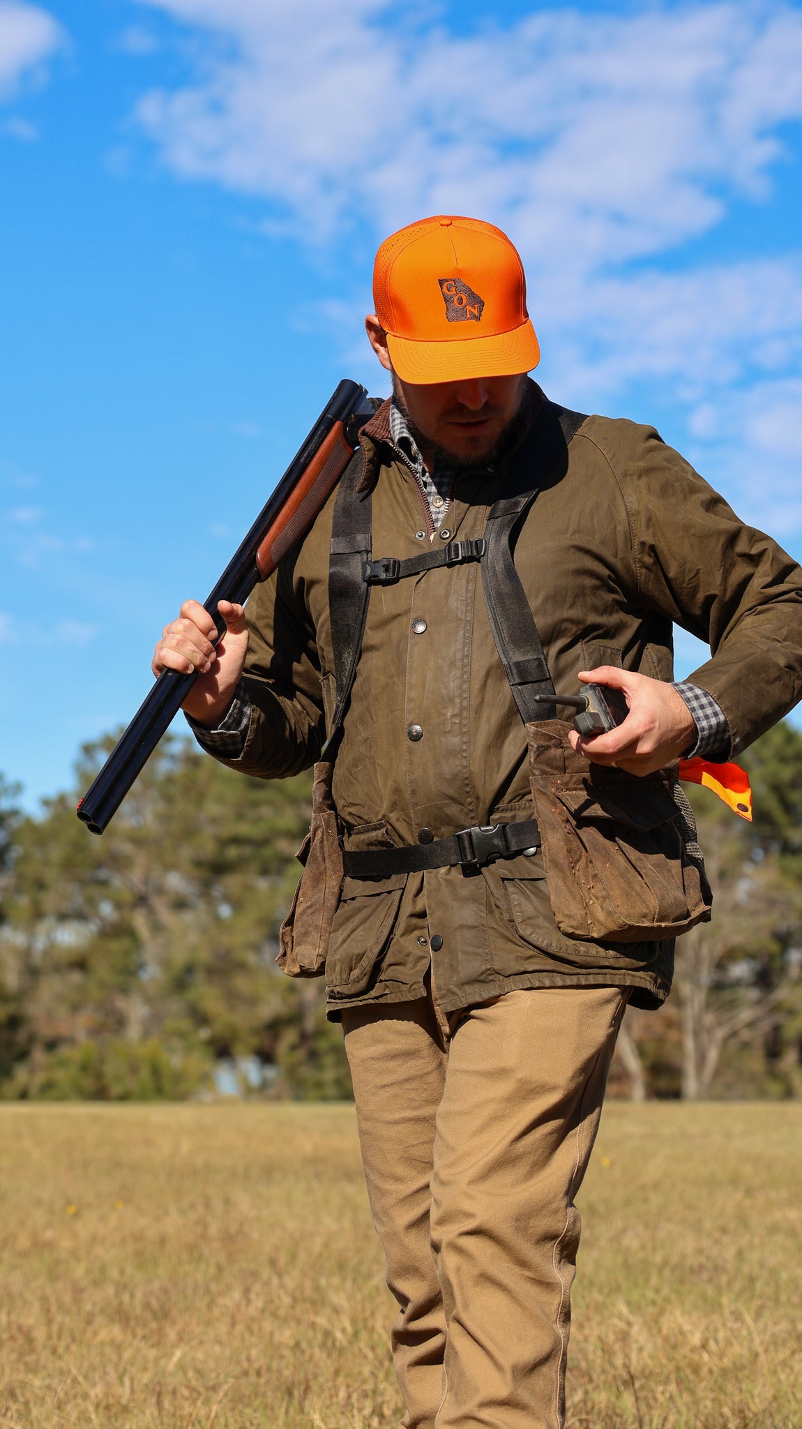 The Blaze Hunting Hat features a bold orange Dri-Fit build and a brown GON-state patch for a sharp Georgia look. Breathable, quick-drying, and perfect for long days in the woods.